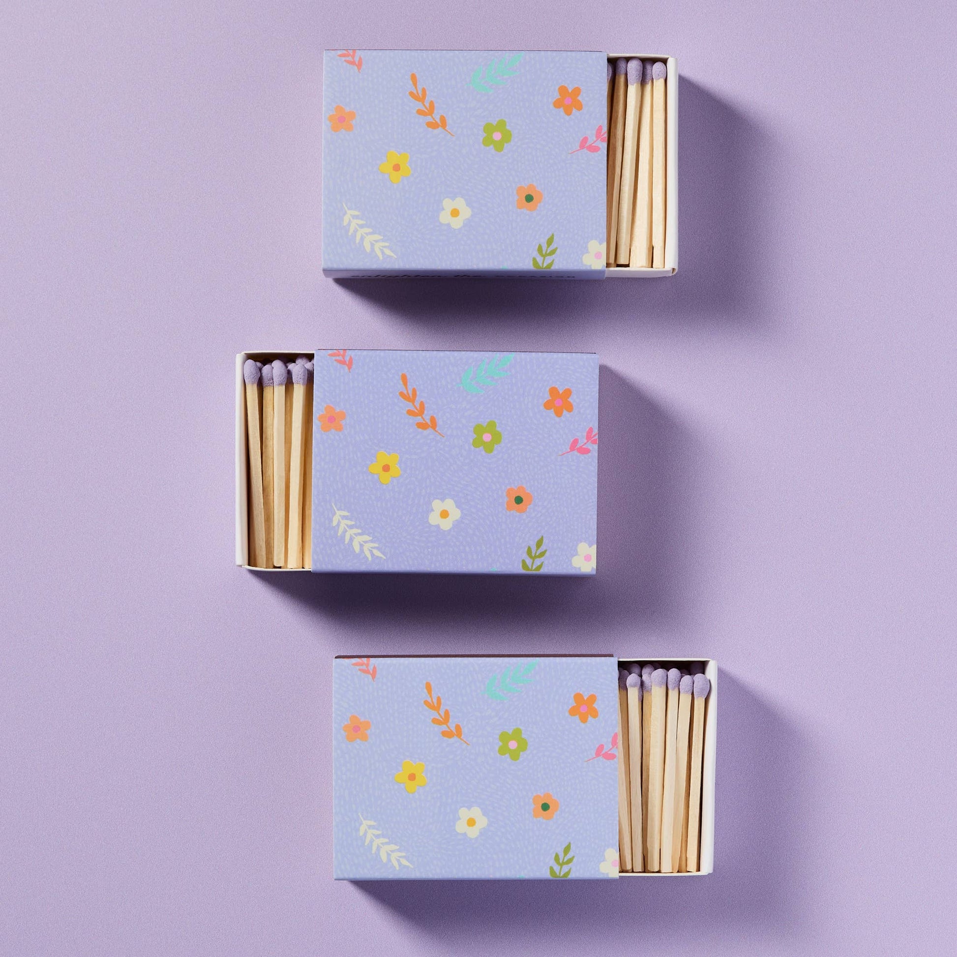 Lavender Blossom Matchbox with Colorful Matchsticks
