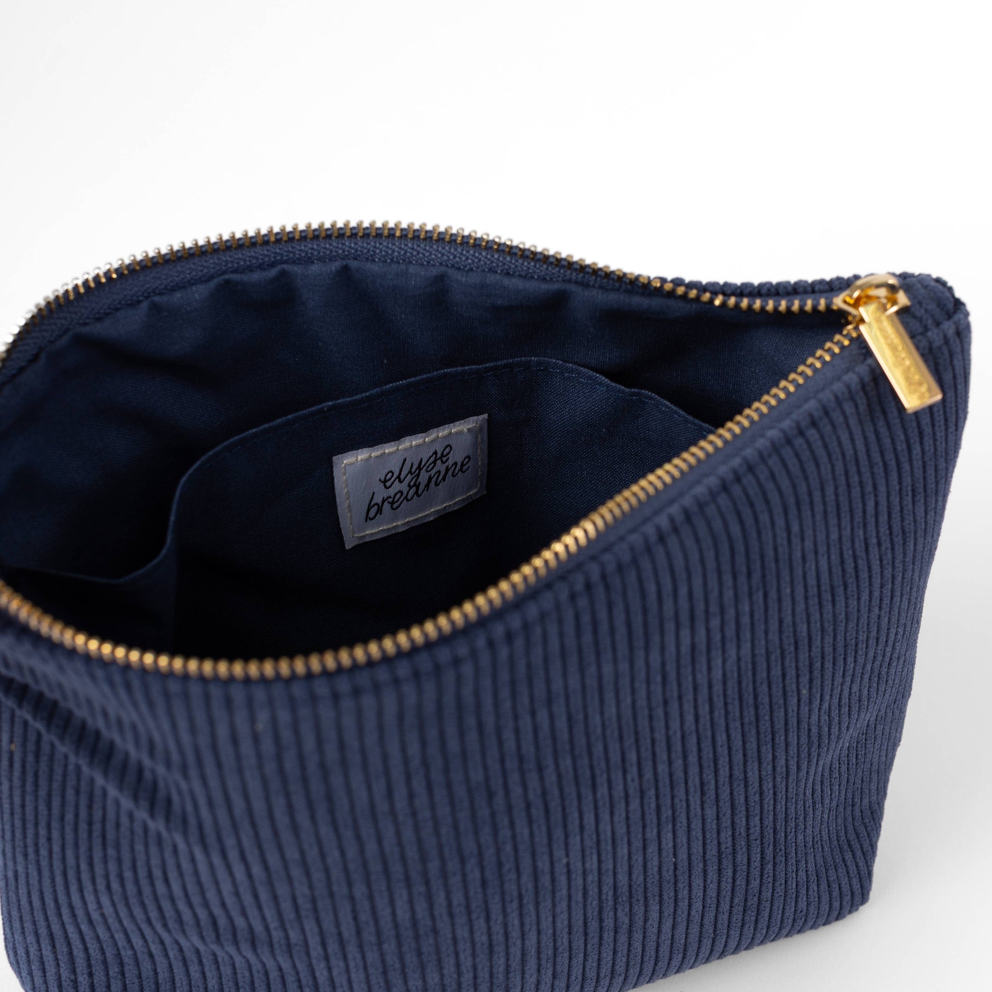 Designed to keep your essentials organized and easy to reach, this versatile Large Zipper Pouch is a stylish solution for travel, daily errands, and creative projects alike. Crafted from soft cotton-poly corduroy and finished with a polished gold zipper, it’s spacious enough for makeup, art supplies, tech accessories, or anything else you like to keep neatly contained. Compact yet generous in size, it slips effortlessly into a tote or carry-on so everything you need is always close at hand.