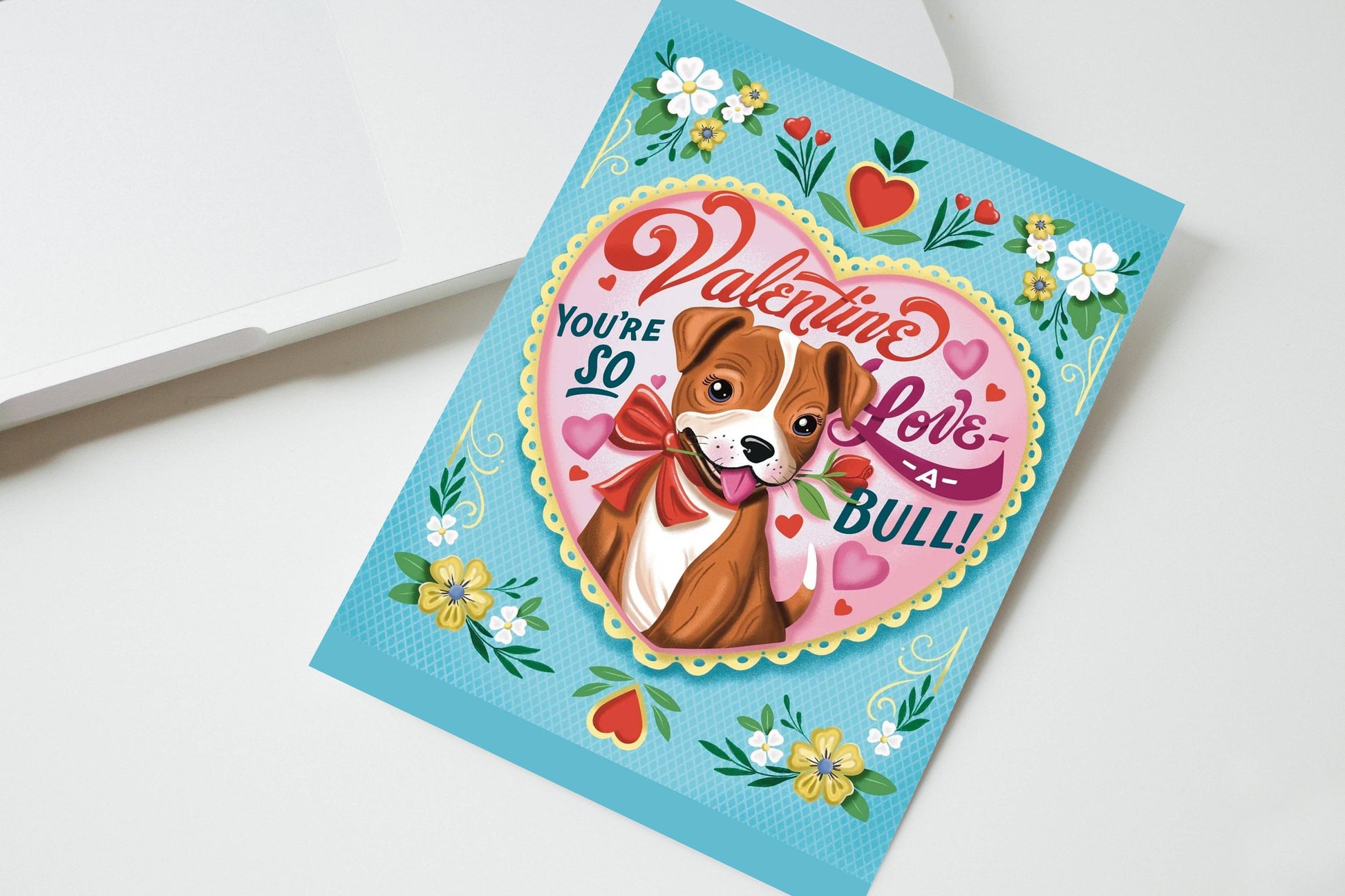 Vintage Puppy Dog Valentine Card - You're so Love-a-Bull