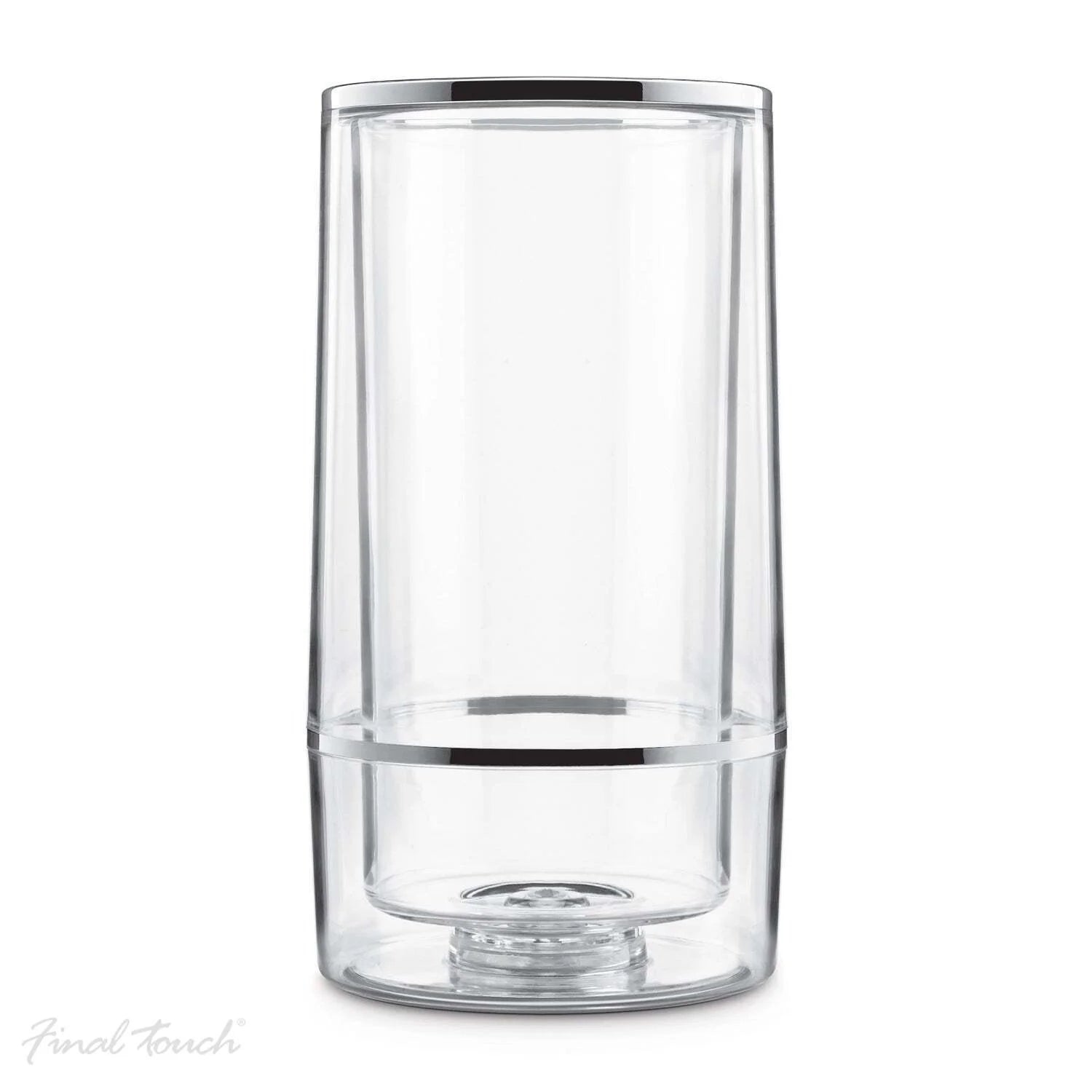 Enjoy every pour at the perfect temperature with this sleek Double-Wall Acrylic Wine Chiller. Simply place your pre-chilled bottle of wine or Champagne inside—the double-wall design locks in the cold while keeping warmth out. Made from durable, shatterproof acrylic with chrome accents, it’s a stylish and mess-free way to serve your favorite drinks.