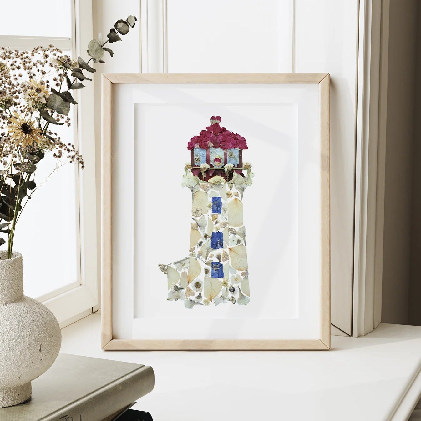 East Coast Lighthouse—Pressed Flower Wall Print
