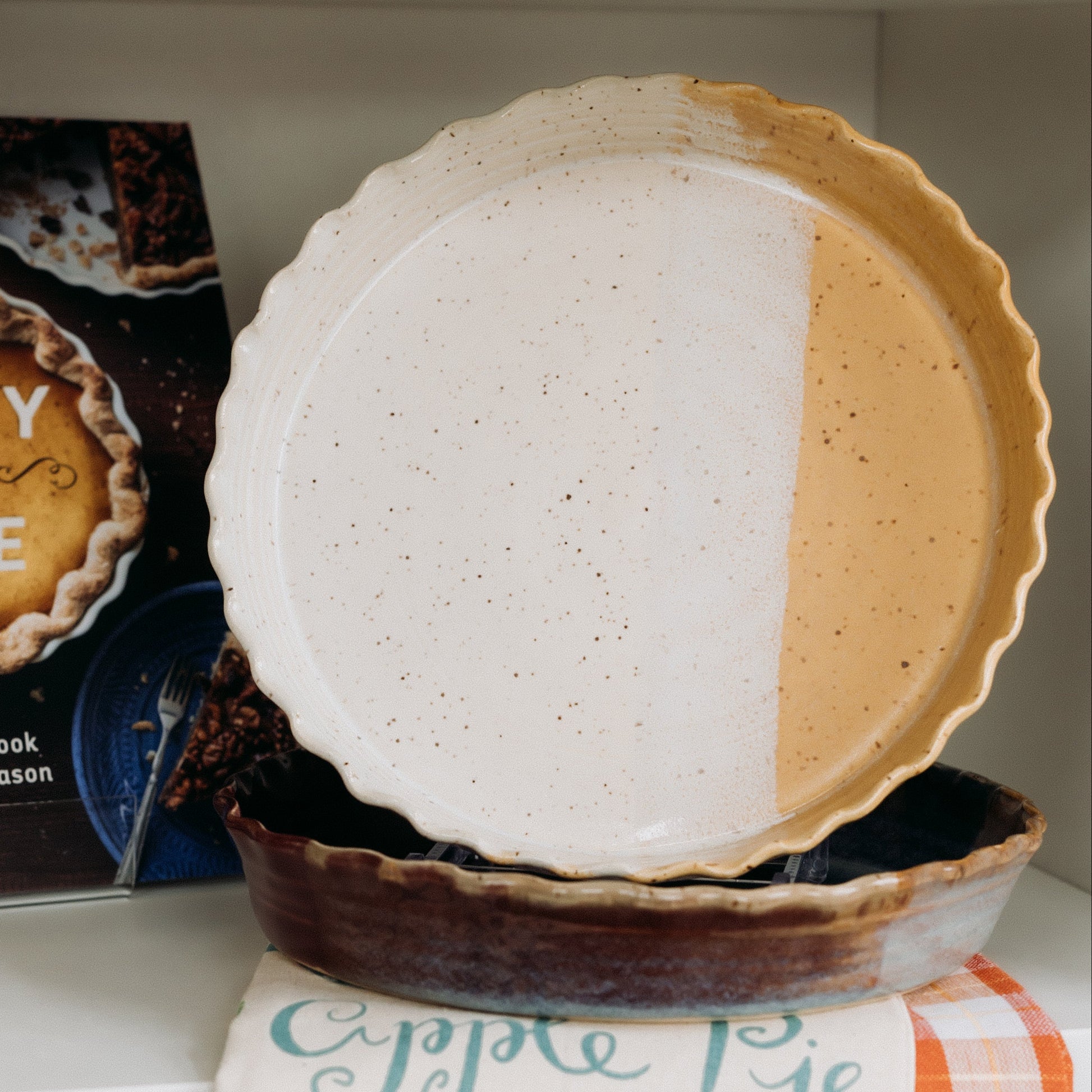 This 8" pie plate is handmade in Nova Scotia by potter Alicia Kate and finished in her cheerful Sunny Day glaze. Perfect for baking pumpkin or apple pies, turkey pot pies, or other cozy fall-inspired dishes, it’s a piece that brings both beauty and function to your table.