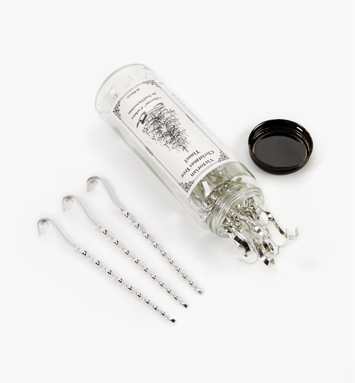 Carefully handcrafted in Lancaster, Ontario, each piece is designed with an even twist, replicating the vintage charm of traditional tinsel that graced Christmas trees in the Victorian era. Measuring five-and-a-half inches long, this tinsel will make your tree sparkle with classic beauty.